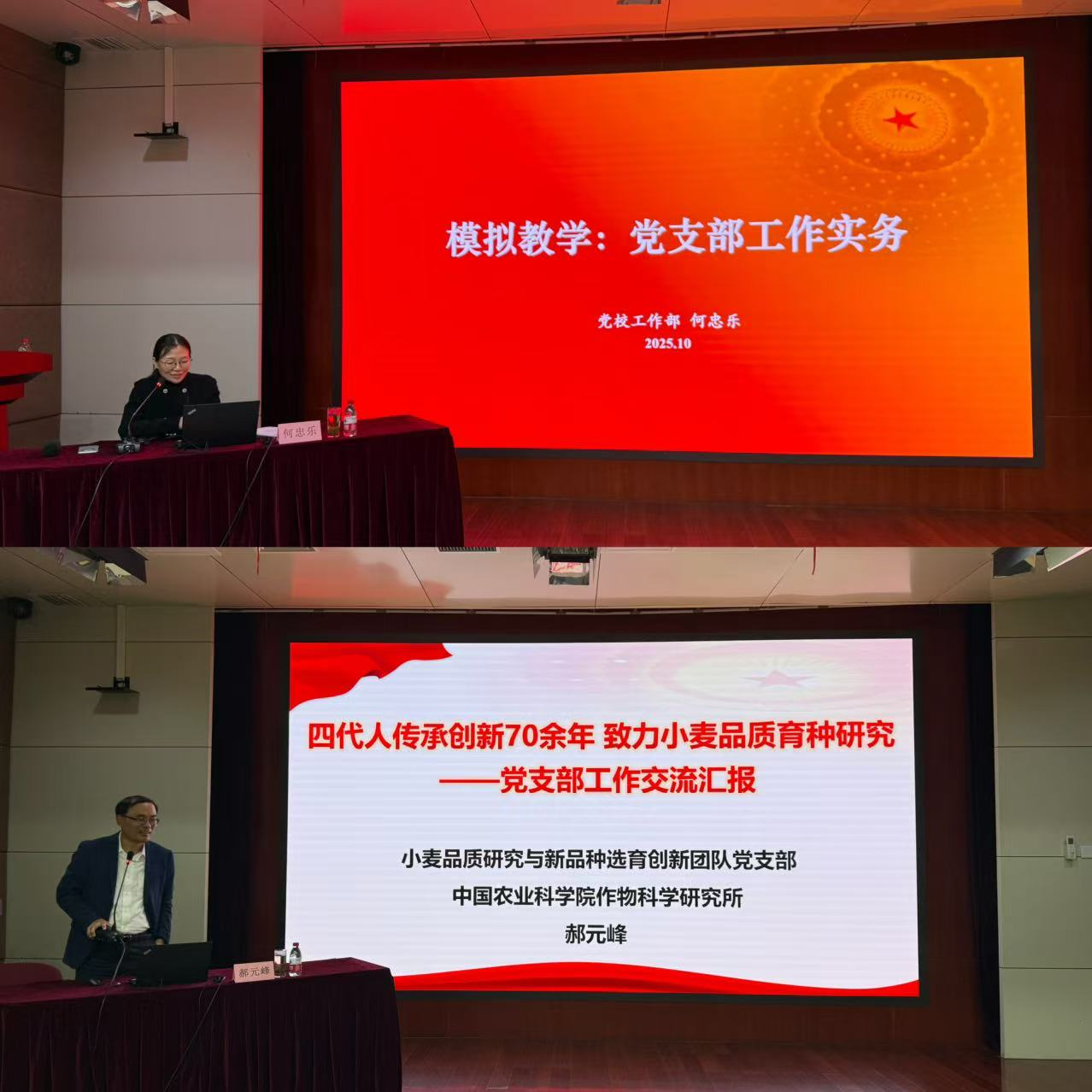 培训班邀请我院小麦品质研究与新品种选育创新团队党支部书记作辅导报告,介绍团队传承弘扬农科精神、履行小麦育种研究职责使命的典型经验成效,分享抓党建促业务“四个坚持”支部工作法等。邀请农业农村部党校老师围绕支部“三会一课”、换届选举、发展党员和组织生活会等支部工作实务内容,组织参训学员进行现场情景模拟实操演练、展开分组竞赛,经激烈角逐,二组学员组成的“临时党支部”胜出并荣获“最强战斗堡垒”称号。